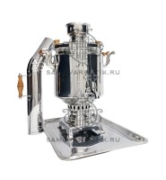 Настоящий эксклюзивный самовар на дровах классического объема, исполненный в стильном фасоне "Банка" на квадратной станине с оригинальным вертком - трилистником.